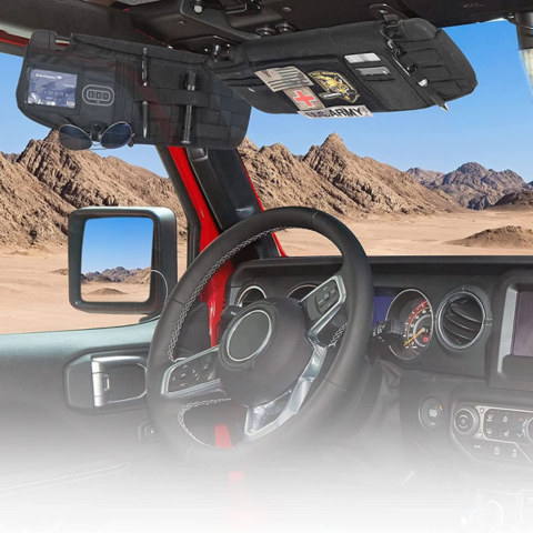 2018年から2023年の間に製造されたWrangler JLおよびJT専用に設計されたこのサンシェードオーガナイザーは、必需品を完璧に整理し、簡単にアクセスできるようにします。工具なしで素早く取り付けられ、その目立たないデザインは車内に調和して統合されます。